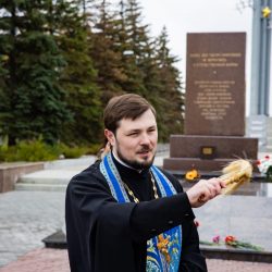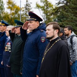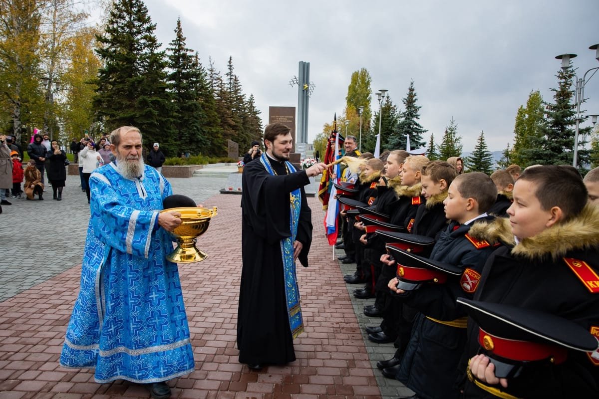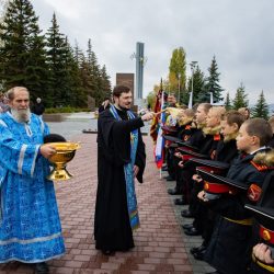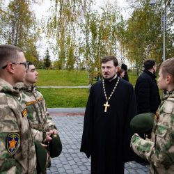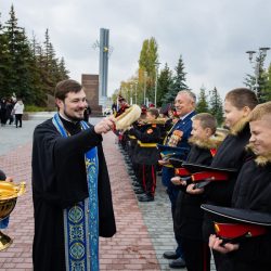Священник Алексий Булеков обратился к ребятам со словами поздравления и пастырского напутствия, напомнив ребятам, что принятие присяги — это особая честь, но и большая ответственность быть причастными многовековой традиции русского воинства. Затем отец Алексий окропил кадетов освященной водой.