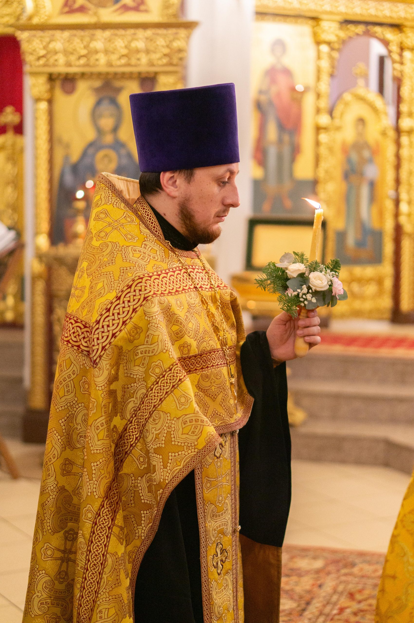 22 Ноября, накануне Недели 24-й по Пятидесятнице, дня памяти Апп. от 70-ти Ера́ста, Оли́мпа, Родио́на, Сосипа́тра, Куа́рта (Ква́рта) и Те́ртия, благочинный Северо-Западного округа, настоятель храма иерей Алексий Булеков, в сослужении клириков храма, протоиерея Сергия Родникова, иерея Дионисия Степанова, иерея Кирилла Севастьянова и диакона Кирилла Боброва, совершил Всенощное бдение.