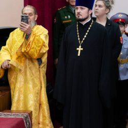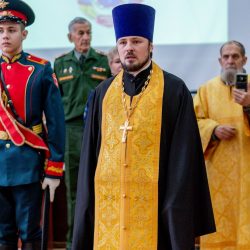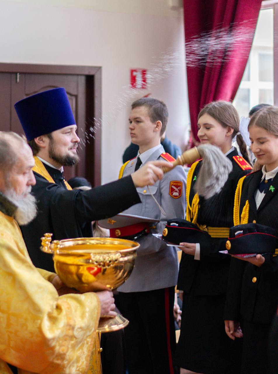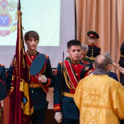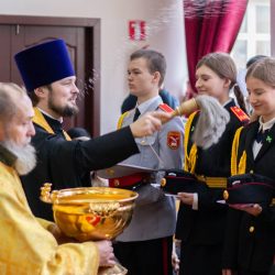 о. Алексий обратился к ребятам со словами поздравления и пастырского напутствия, напомнив ребятам, что принятие присяги — это особая честь, но и большая ответственность быть причастными многовековой традиции русского воинства. Затем отец Алексий окропил кадетов освященной водой.