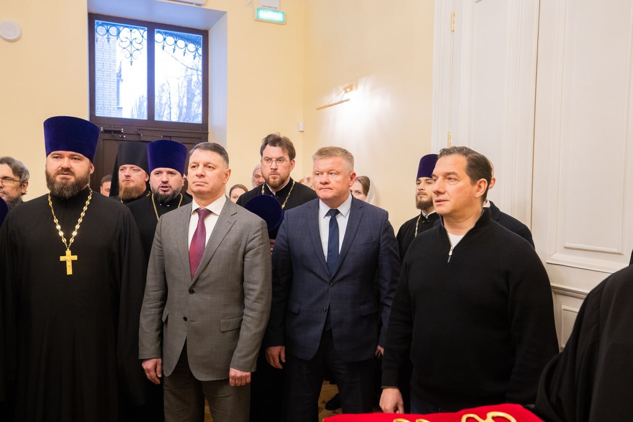 Митрополит Игнатий совершил чин освящения здания. На освящении молились вице-губернатор — руководитель аппарата губернатора Саратовской области Михаил Игоревич Орлов, первый вице-президент – финансовый директор ПАО «ГМК Норильский никель» Сергей Геннадьевич Малышев, глава города Саратова Михаил Александрович Исаев, генеральный директор ООО «Норникель — Общий центр обслуживания» Антон Михайлович Лопацинский.
