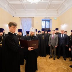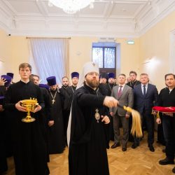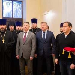 В своем выступлении вице-губернатор — руководитель аппарата губернатора Саратовской области Михаил Игоревич Орлов поблагодарил Владимира Олеговича Потанина, главу митрополии и всех благотворителей от имени губернатора региона Романа Викторовича Бусаргина и отметил: очень важно, что в этом здании будут располагаться структуры, отвечающие за религиозное образование, и будут проводиться мероприятия, связанные с просвещением, не только епархиальные, но и церковно-общественные. Он подчеркнул, что в Саратовской области взаимодействие митрополии и светских образовательных структур организовано достаточно хорошо, и открытие такого центра призвано стать еще одним тому свидетельством. Михаил Игоревич поблагодарил представителей компании «Норильский никель» за дар городу — восстановление памятника архитектуры — и выразил уверенность, что владыка Игнатий приложит все силы, чтобы обновленные стены наполнились не менее замечательным содержанием.