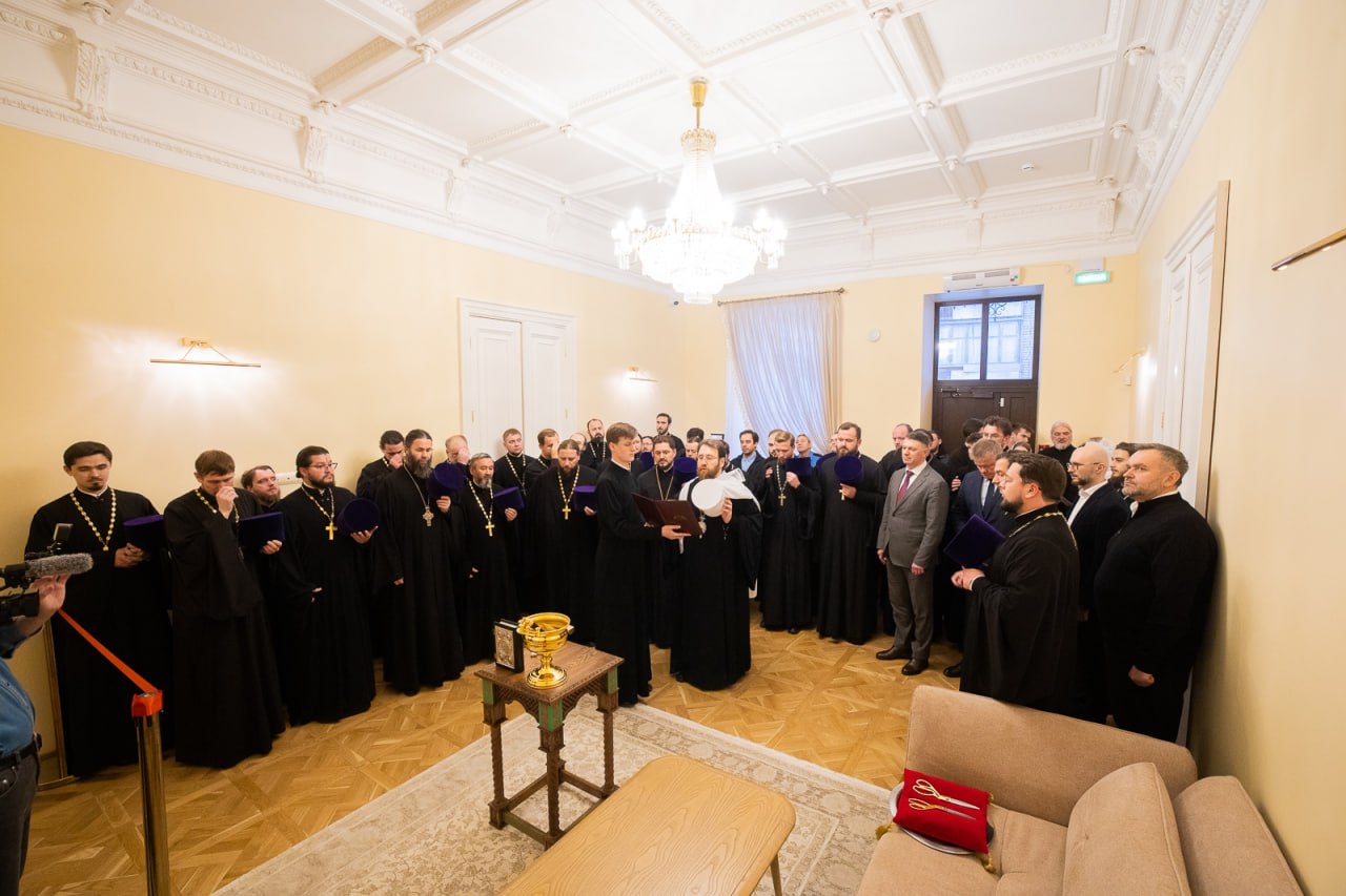 Приветствуя собравшихся, глава города Михаил Александрович Исаев отметил, что в Саратове есть множество прекрасных исторических зданий, которые в последнее время обретают новую жизнь и украшают город. Он выразил слова особой благодарности представителям компании «Норильский никель» за масштабное обновление здания, которое будет служить духовному образованию, и заверил митрополита Игнатия, что городская администрация будет содействовать благоустройству окружающей территории и надлежащей охране памятника архитектуры. Он также выразил сердечную благодарность Владимиру Олеговичу Потанину за огромный вклад и в дело просвещения на саратовской земле, и в сохранение культурного наследия.
