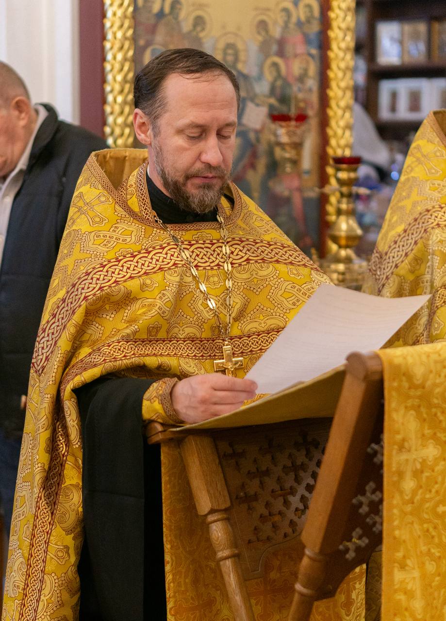 Совершено молебное пение с чтением акафиста перед отбытием мощей блаженной Матроны Московской 21.12.2025, 12:21 Новости храма 19 Декабря, перед отбытием мощей Блаженной Матроны Московской, духовенством храма совершено Молебное пение с чтением Акафиста Святой.Предыдущая новостьДень памяти святителя Николая Чудотворца. Божественная ЛитургияСледующая новостьНеделя 28-я по Пятидесятнице. Всенощное бдение