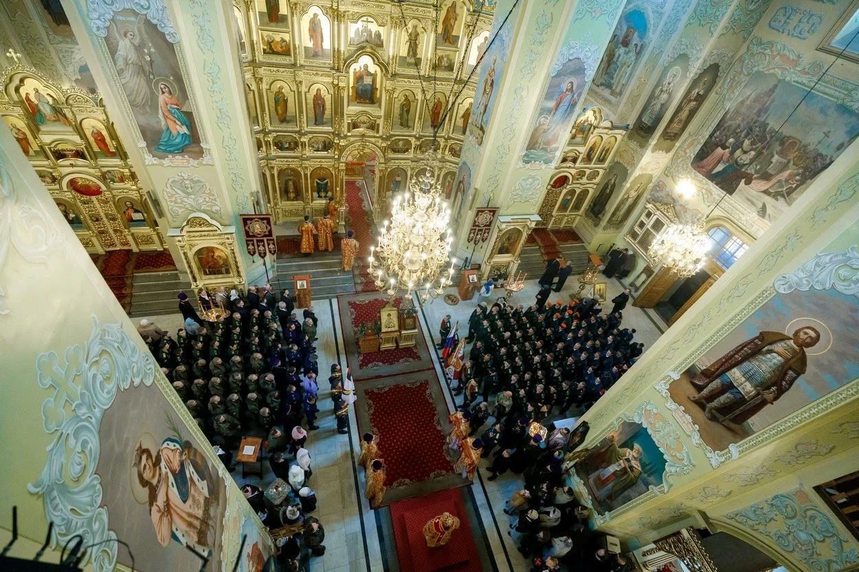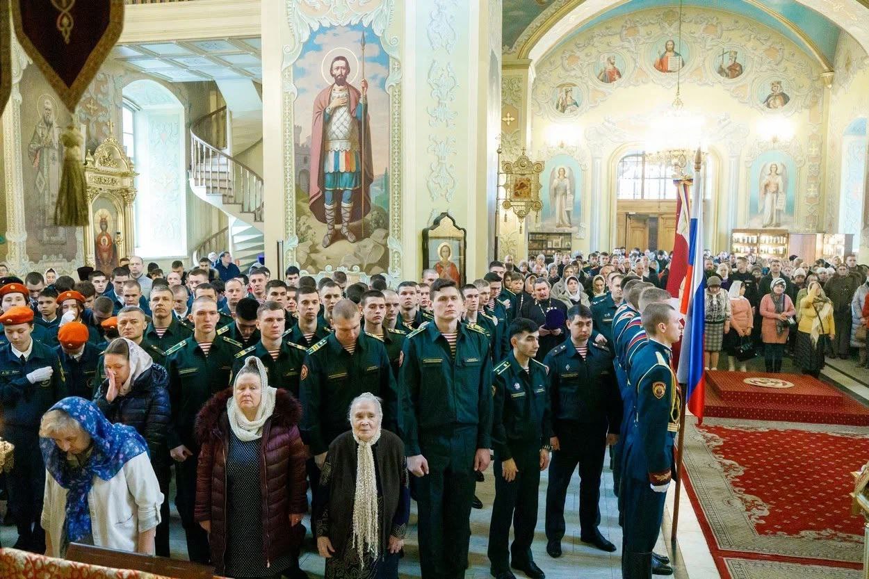 На соборную молитву также собрались представители МВД, Росгвардии, Федеральной службы судебных приставов, Минюста России, Роспотребнадзора, Следственного комитета РФ, Пограничного управления ФСБ России по Саратовской и Самарской областям, транспортной прокуратуры, Саратовского высшего артиллерийского командного училища, Саратовского высшего военного инженерного училища радиационной, химической и биологической защиты, священнослужители, окормляющие воинов и курсантов, представители общественных, патриотических, ветеранских организаций, студенты профессионально-педагогического колледжа СГТУ, учащиеся кадетских классов, волонтёры из разных населенных пунктов области, оказывающие помощь бойцам СВО, родственники военнослужащих, матери, жены и дети погибших бойцов.
