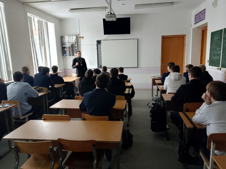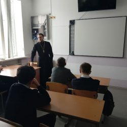 12 Февраля иерей Дионисий Степанов заместитель руководителя епархиального отдела по взаимодействию с ГУ МВД России по Саратовской области, ответственный за духовное окормление сотрудников Приволжского линейного управления МВД России на транспорте, провел беседу со студентами 1 курса Железнодорожного техникума.