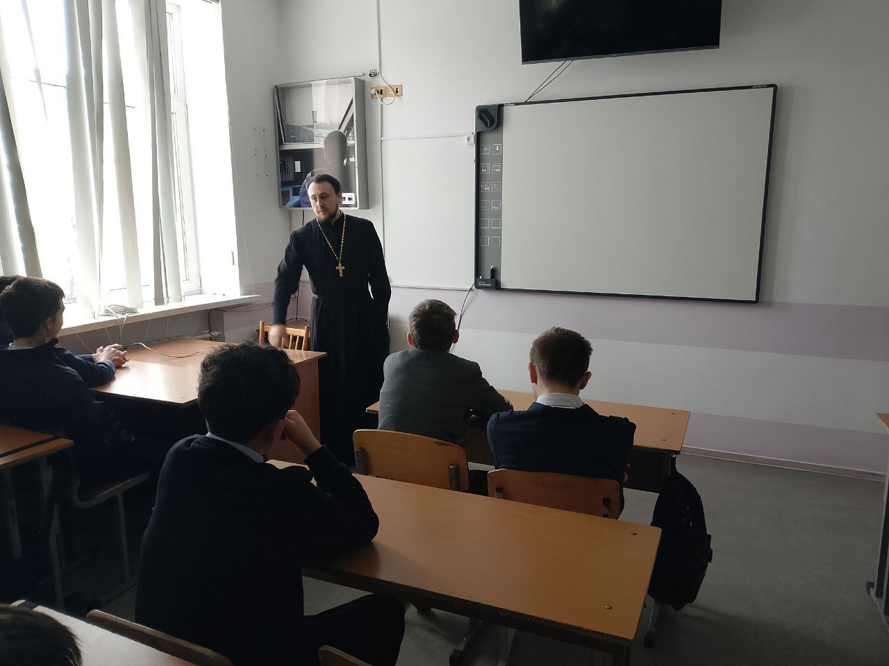 В конце беседы ребята задали вопросы о Церкви и о священническом служении.