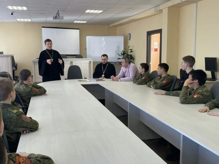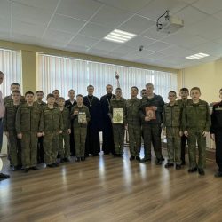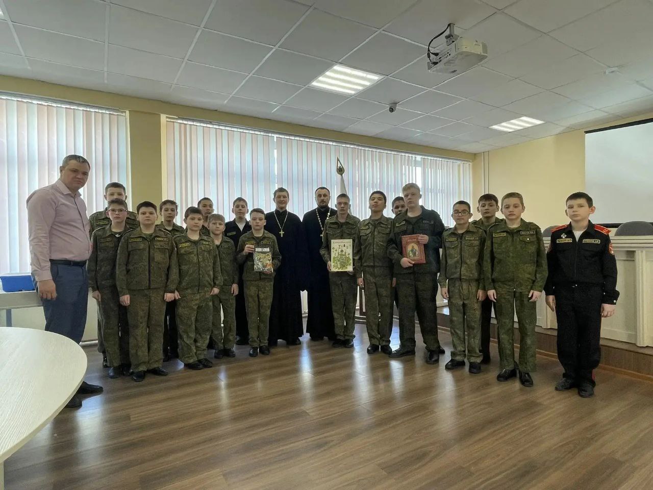12 Марта ключарь храма иерей Дионисий Степанов и клирик храма, руководитель Воскресной школы иерей Дмитрий Евстигнеев провели беседу с кадетами 61 взвода МОУ «СОШ №63 с УИП».